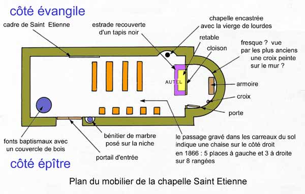) et le plan (disposition du mobilier dans la chapelle