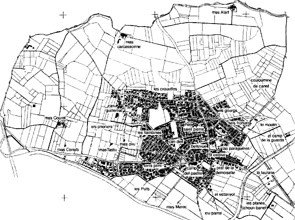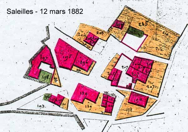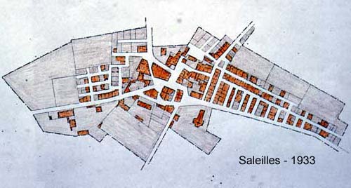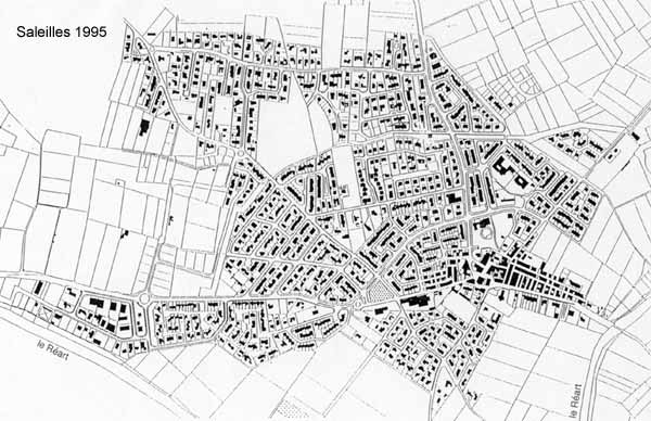 La série des plans de Saleilles de 1829 , 1834 , 1882 , 1888 , 1933 , 1969 , 1980 , 1985 , 1995 et 1999 ainsi que les photos aériennes de 1962 et 1980 vous permettront d'apprécier l'évolution du village au niveau de la construction ces dernières années. Nous terminerons par deux cartes : lune indiquant les différents noms des lieux dits et mas de la commune (noms des écarts ), lautre signalant les noms des quartiers ou lotissements du village (noms de lotissements).