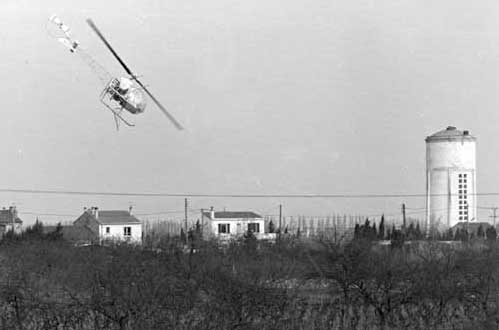Sulfatage des vignes avec l'hélicoptère