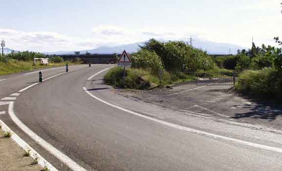 à droite, l'ancienne route qui a servi de tremplin à la vague