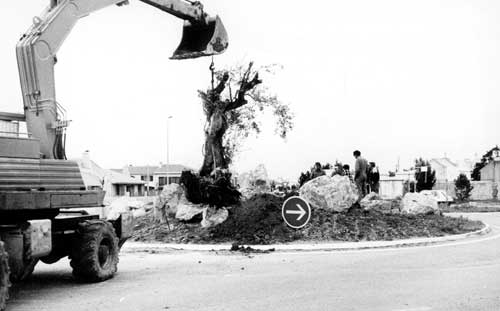 Mise en place de l'olivier au rond point du cimetière